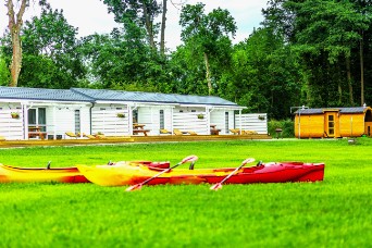 Spływy kajakowe przez dzikie odcinki rzek, długie leśne trasy rowerowe i chwile odpoczynku w strefie relaksu po aktywnym dniu.