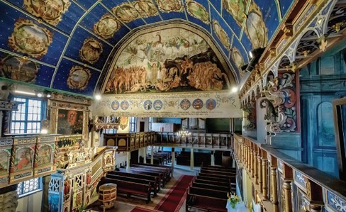 Jeden z najcenniejszych w Europie przykładów sakralnej architektury drewnianej. W Świątyni znajduje się aż 117 biblijnych malowideł co czyni jego polichromię naprawdę urzekającą.