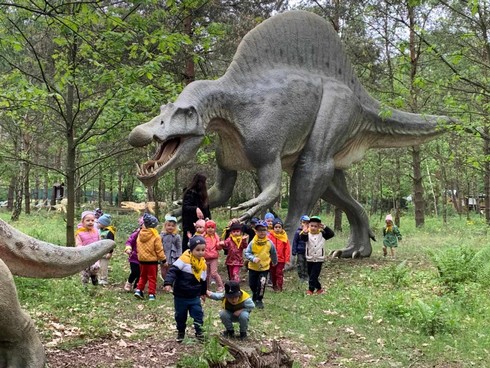 Leśna ścieżka edukacyjna z czterdziestoma naturalnej wielkości modelami prehistorycznych gadów. Nowiny Wielkie ul. Kolejowa 1 B