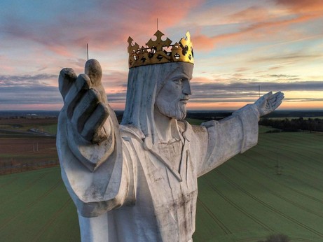 Najwyższa na świecie figura Jezusa Chrystusa Króla Wszechświata z podstawą mierzy 47 m . Rzeźba wzniesiona w 2010 roku według projektu Mirosława Pateckiego.
