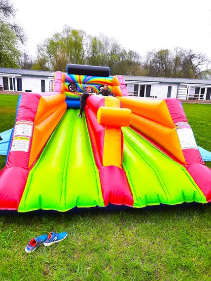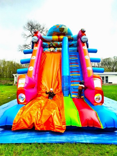 Zjeżdżalnia jest jednym z najlepiej rozpoznawalnych dmuchańców na festynach czy innych uroczystościach plenerowych. Służy do ześlizgiwania się uczestników zabawy z małej górki, a następnie krótkiej wspinaczki pod górkę. Przeznaczony dla dzieci od 7 lat