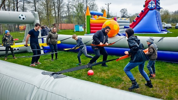 W swojej ofercie posiadamy 4 urządzenia dmuchane dedykowane dla różnych grup wiekowych. Dla najmłodszych polecamy „plac zabaw” dla nieco starszych „gigantyczna zjeżdżalnię”. Dmuchańce do rywalizacji tj. „bungee-run” czy „gigantyczne piłkarzyki” najlepiej sprawdzą się podczas imprez firmowych czy rodzinnych.