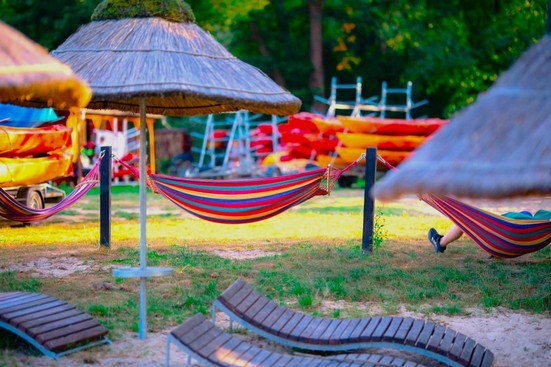Spływy kajakowe przez dzikie odcinki rzek, długie leśne trasy rowerowe i chwile odpoczynku w strefie relaksu po aktywnym dniu.